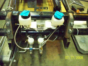 is bolted to the steering arm and tie wraps keep the 2 master cylinder