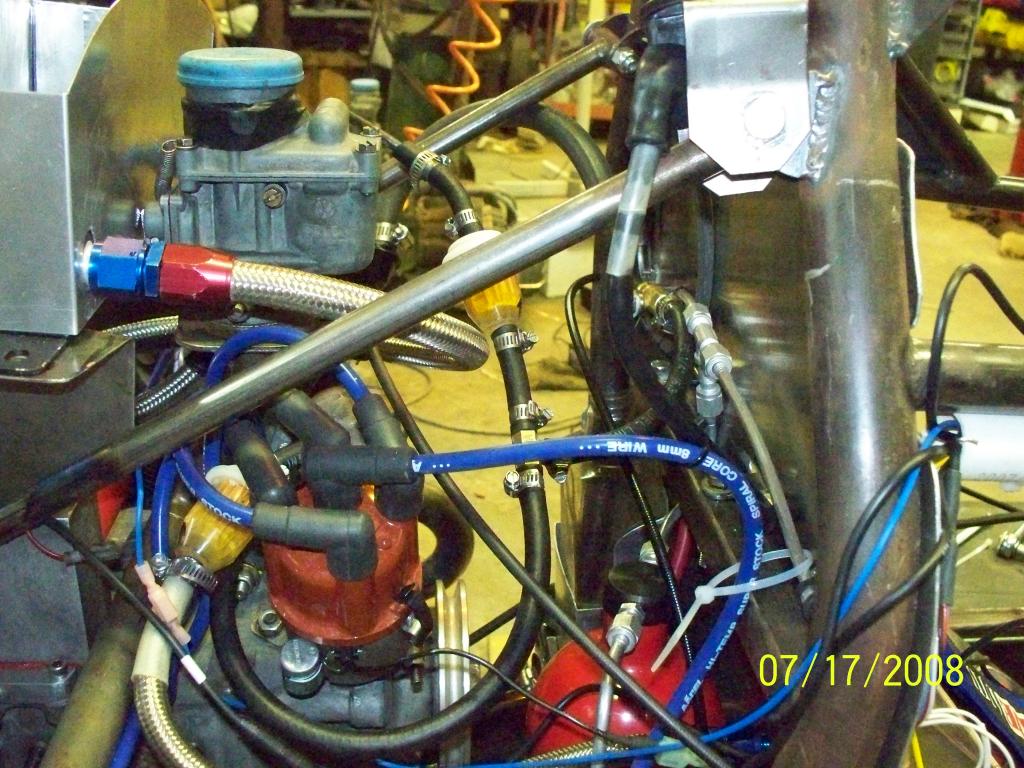 The conglomeration of rubber hoses is to accommodate the SCCA mandated fuel