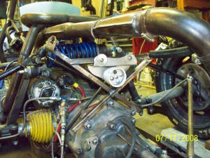 An aluminum plate screwed to the steering box tube holds the