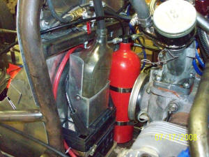 Battery, catch can and fire system, all neat and tidy in