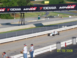 Linda tried several times to get a shot of me ON the track, but the time lag of our digital camera left her with a lot of empty track. She was, however, successful at recording the fact that I WAS able to drive it back into the pits. Not a bad start!